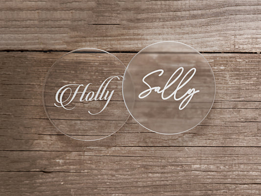 Round Mirrored Acrylic Wedding Place Names Engraved With Your Guests Names